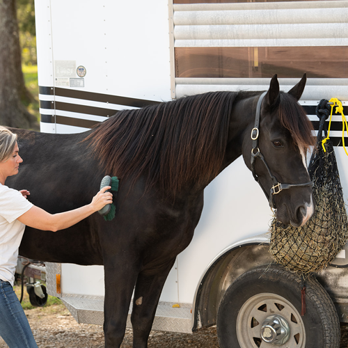 Perfect size for snacking in the trailer or for keeping them busy at shows. It is the same high quality as the large nets, easy to fill and hang, and keeps the horses busy for a good long while. Customer service from Texas Hay Nets is a like breath of fresh air.
